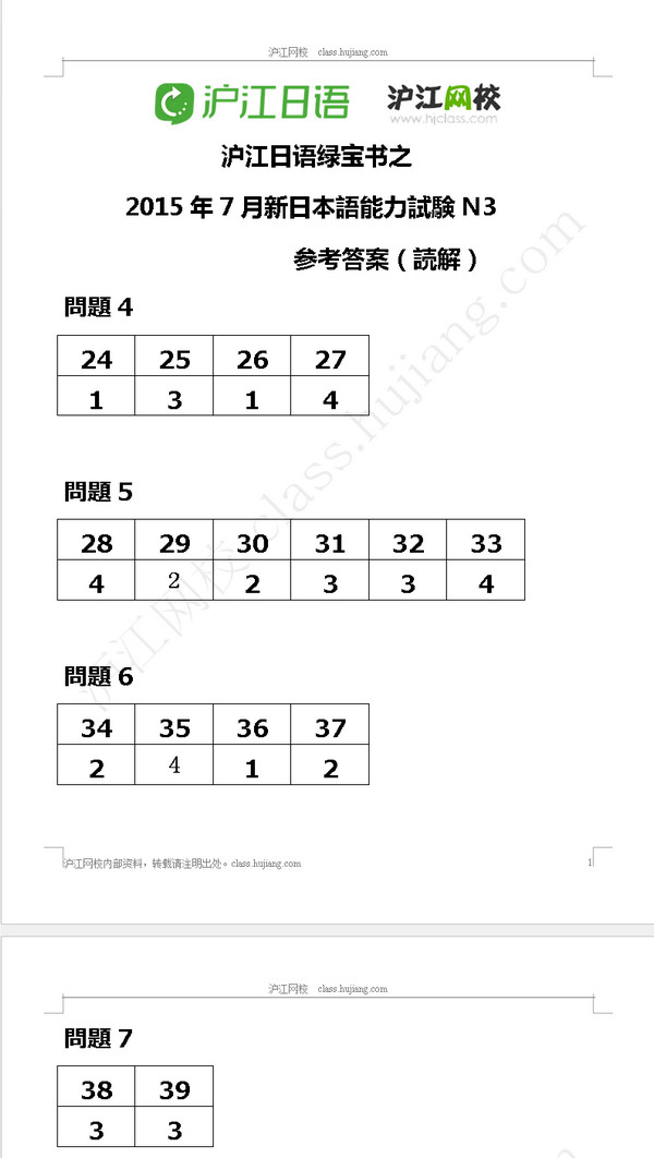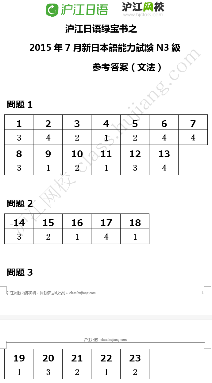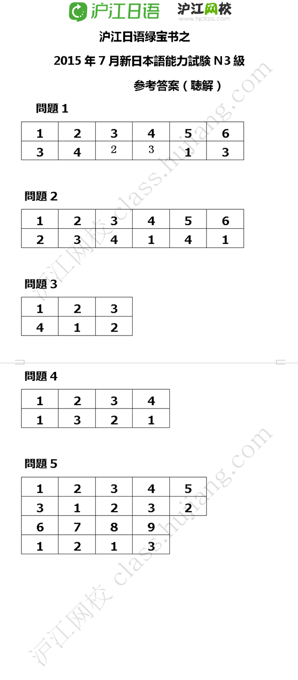 | Đáp án phần nghe JLPT N3 năm 2015 |